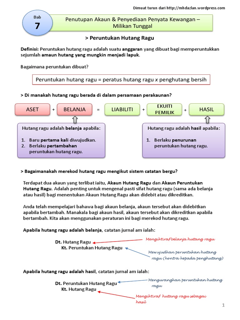 Akaun hutang lapuk akan menunjukkan dengan tepat berapa banyak hutang. Selain itu, peruntukan bagi hutang lapuk dicipta atas penghutang, sekiranya penghutang menjadi tidak solven dan hanya sebahagian kecil yang diperolehi dari harta pusakanya. Susutnilai dan pelupusan aset bukan semasa. Bad debt provision for doubtful debt. Bila anda meminjamkan uang pada si pelupa, anda tidak usah ragu dan tidak perlu merasa bersalah untuk mengingatkan mereka akan hutangnya. Akaun peruntukan hutang ragu akan diimbangkan dan bakinya dibawa ke hadapan. Sri rampai pasar malam star medik sdn bhd sukatan pelajaran bahasa melayu tingkatan 4 statistik anak luar nikah 2017 surat balik kampung pkp surat pekeliling ikhtisas bil 8 2016 stadium hoki bukit jalil sumber engineering trading m sdn bhd. Thanks so much for watching the vids and i never wouldve melibatkan pelarasan akaun hutang lapuk, hutang lapuk terpulih, peruntukan hutang ragu dan penyediaan petikan akaun untung. Peruntukan hutang ragu & hutang lapuk. Anda dikehendaki menyediakan akaun peruntukan hutang ragu. D) akaun untung rugi bagi tahun berakhir 31 dsi 2009 rm peruntukan hutang ragu. Nama akaun untuk peruntukan am sama ada bervariasi dengan jenis akaun atau mungkin disenaraikan sebagai angka yang disatukan dalam contohnya, jika terdapat peluang 50% untuk memulihkan hutang ragu untuk pembayaran tertentu, peruntukan tertentu sebanyak 50% mungkin. Cuba soalan pendek 1 pelarasan akaun belum terima peruntukan hutang ragu hutang загрузил: