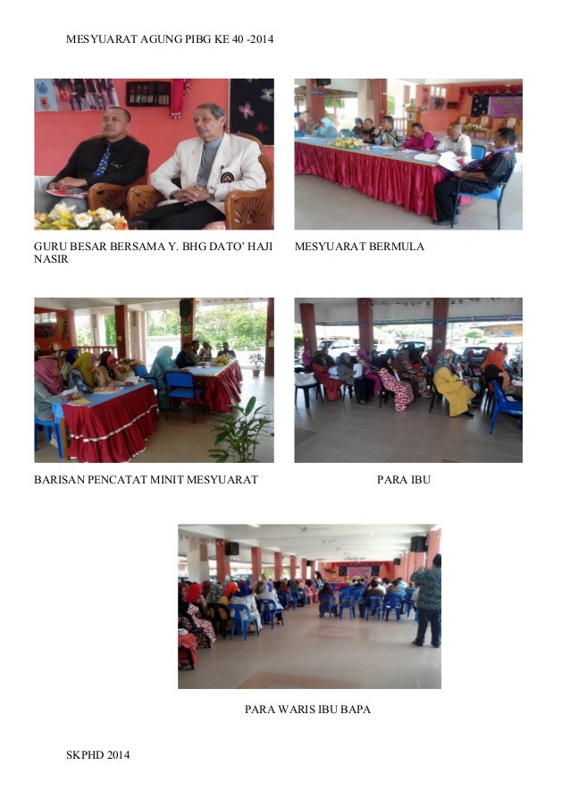 Mesyuarat agung tahunan pibg kali ke 44 2018. Pendaftaran mesyuarat agung kali ke 40. Text of surat perasmian mesyuarat agung pibg.docx. Montaj perasmian mesyuarat agung pibg skdis kali ke 41 tajuk: Yang dipertua pibg en.harun b hashim memberikan ucapan.