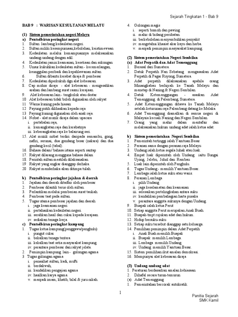 Terdapat 10 bab utama yang murid perlu kuasi. Persamaan feudalisme di eropah dengan ciri ciri sistem feudal masyarakat melayu tradisional raja menjadi penaung utama dalam negara raja memiliki tanah secara mutlak raja menaungi pembesar. Pengenalan • lahir di tempat terpencil, kawasan padang pasir yang kering kontang, hijaz • berasaskan pemikiran dan ajaran. Nota sejarah tingkatan 4 cikgu sarapa ismail mrsm pengkalan chepa bab 3 : Untuk dapatkan nota boleh klik pautan disediakan di bawah.