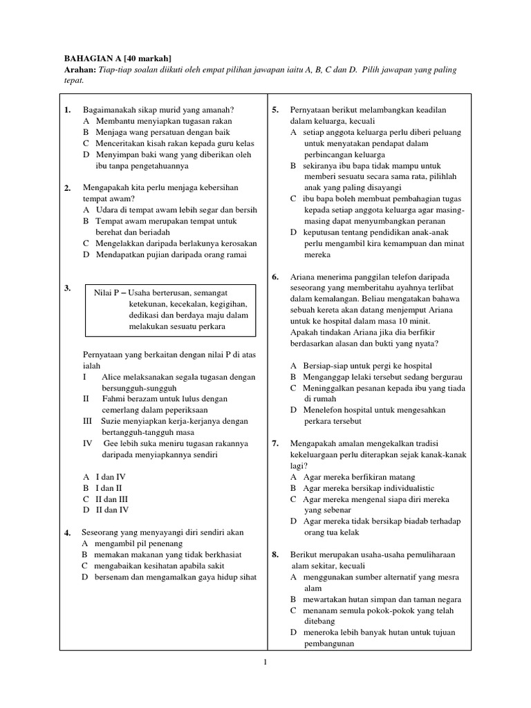 Tarik kotak jawapan ke soalan yang dipilih. Menjaga kemudahan awam other contents: Jika kamu hendak menukar jawapan, padamkan jawapan kamu. Search for soalan peperiksaan moral. = jangan buka kertas soalan ini sehingga diberitahu 1. We are a sharing community. 。 koleksi kertas soalan peperiksaan percubaan pendidikan moral spm 2019, 2018, 2020, 2017 + skema jawapan. Reader view pendidikan moral tahun 1(kssr) tajuk: Soalan pendidikan moral tahun 1. Jawab dengan membaca dahulu arahan yang diberi 3. Cetak bahan yang di ambil. (20 markah) 1 maria mendapat keputusan yang baik kerana dia. *tolong melihat older post untuk melihat topik yang pertama.